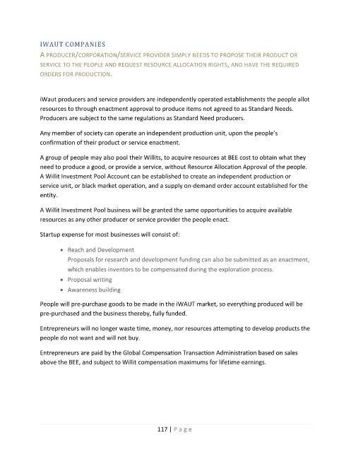 A group of people may also pool their Willits, to acquire resources at BEE cost to obtain what they