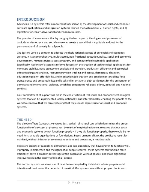 Advancian is a systemic reform movement focused on 1) the development of social and economic