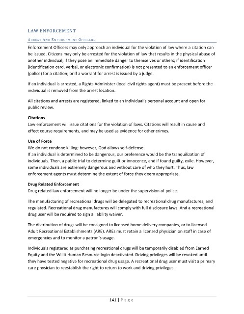 Law enforcement will issue citations for the violation of laws. Citations will result in cause and