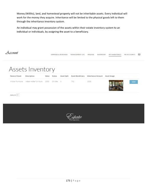 Money (Willits), land, and homestead property will not be inheritable assets. Every individual will