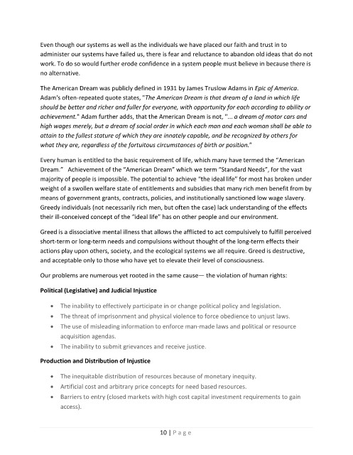 Dream.” Achievement of the “American Dream” which we term “Standard Needs”, for the vast