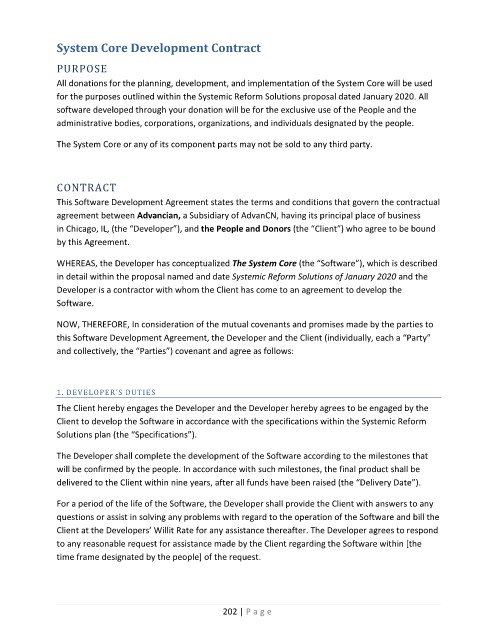 Client to develop the Software in accordance with the specifications within the Systemic Reform