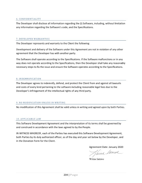 IN WITNESS WHEREOF, each of the Parties has executed this Software Development Agreement,