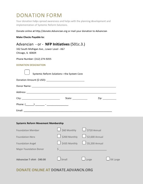 Donate online at http://donate.Advancian.org or mail your donation to Advancian