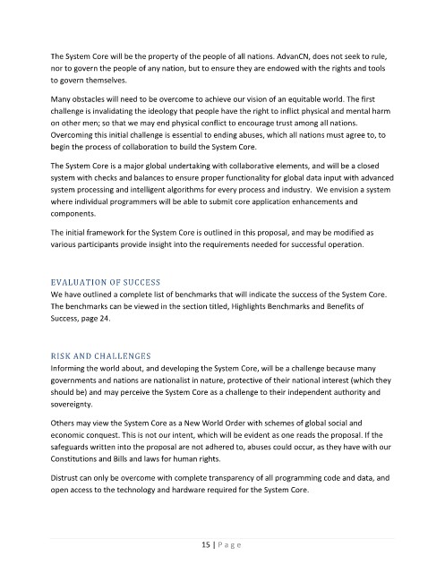 The System Core will be the property of the people of all nations. AdvanCN, does not seek to rule,