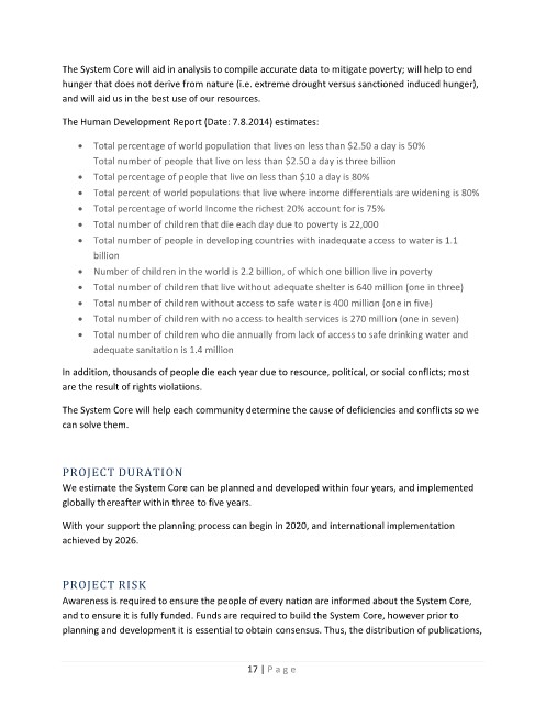 The System Core will aid in analysis to compile accurate data to mitigate poverty; will help to end