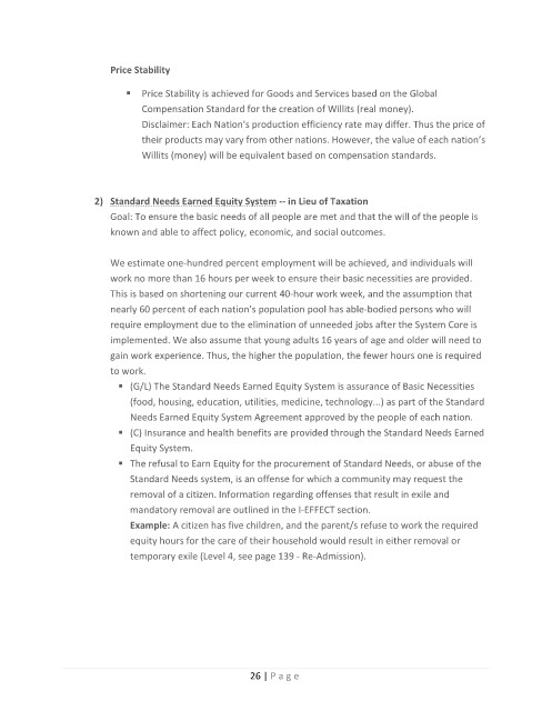 2) Standard Needs Earned Equity System -- in Lieu of Taxation