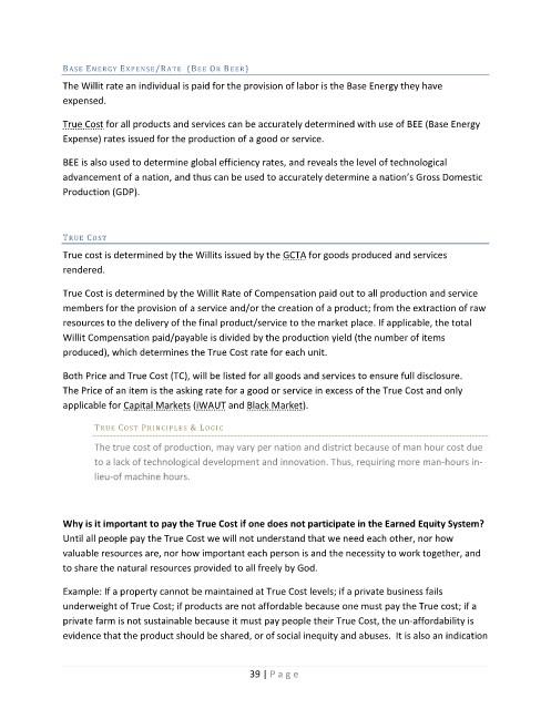 True Cost for all products and services can be accurately determined with use of BEE (Base Energy