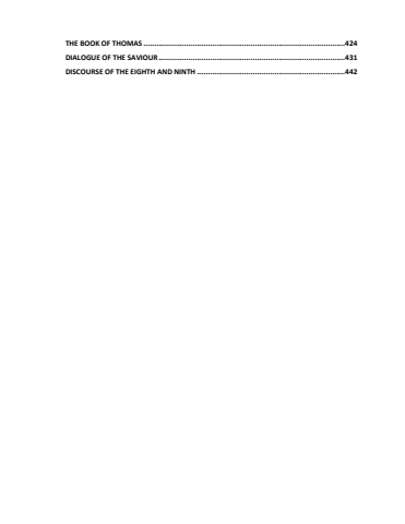 THE BOOK OF THOMAS ..............................................................................................424DIALOGUE OF THE SAVIOUR.......................................................................................431DISCOURSE OF THE EIGHTH AND NINTH .....................................................................442