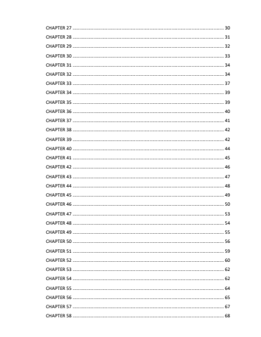 CHAPTER 27 ...................................................................................................................... 30CHAPTER 28 ...................................................................................................................... 31CHAPTER 29 ...................................................................................................................... 32CHAPTER 30 ...................................................................................................................... 33CHAPTER 31 ...................................................................................................................... 34CHAPTER 32 ...................................................................................................................... 34CHAPTER 33 ...................................................................................................................... 37CHAPTER 34 ...................................................................................................................... 39CHAPTER 35 ...................................................................................................................... 39CHAPTER 36 ...................................................................................................................... 40CHAPTER 37 ...................................................................................................................... 41CHAPTER 38 ...................................................................................................................... 42CHAPTER 39 ...................................................................................................................... 42CHAPTER 40 ...................................................................................................................... 44CHAPTER 41 ...................................................................................................................... 45CHAPTER 42 ...................................................................................................................... 46CHAPTER 43 ...................................................................................................................... 47CHAPTER 44 ...................................................................................................................... 48CHAPTER 45 ...................................................................................................................... 49CHAPTER 46 ...................................................................................................................... 50CHAPTER 47 ...................................................................................................................... 53CHAPTER 48 ...................................................................................................................... 54CHAPTER 49 ...................................................................................................................... 55CHAPTER 50 ...................................................................................................................... 56CHAPTER 51 ...................................................................................................................... 59CHAPTER 52 ...................................................................................................................... 60CHAPTER 53 ...................................................................................................................... 62CHAPTER 54 ...................................................................................................................... 62CHAPTER 55 ...................................................................................................................... 64CHAPTER 56 ...................................................................................................................... 65CHAPTER 57 ...................................................................................................................... 67CHAPTER 58 ...................................................................................................................... 68